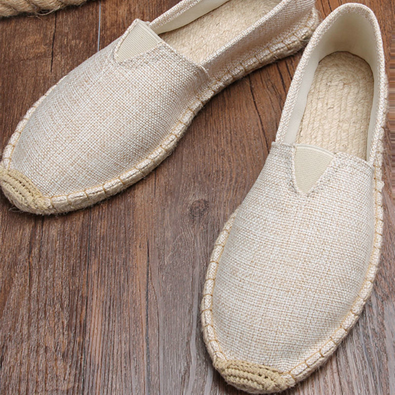 夏の古典的な麻紐麻底靴男性スニーカー亜麻色怠け者のフラットシューズ通気漁師