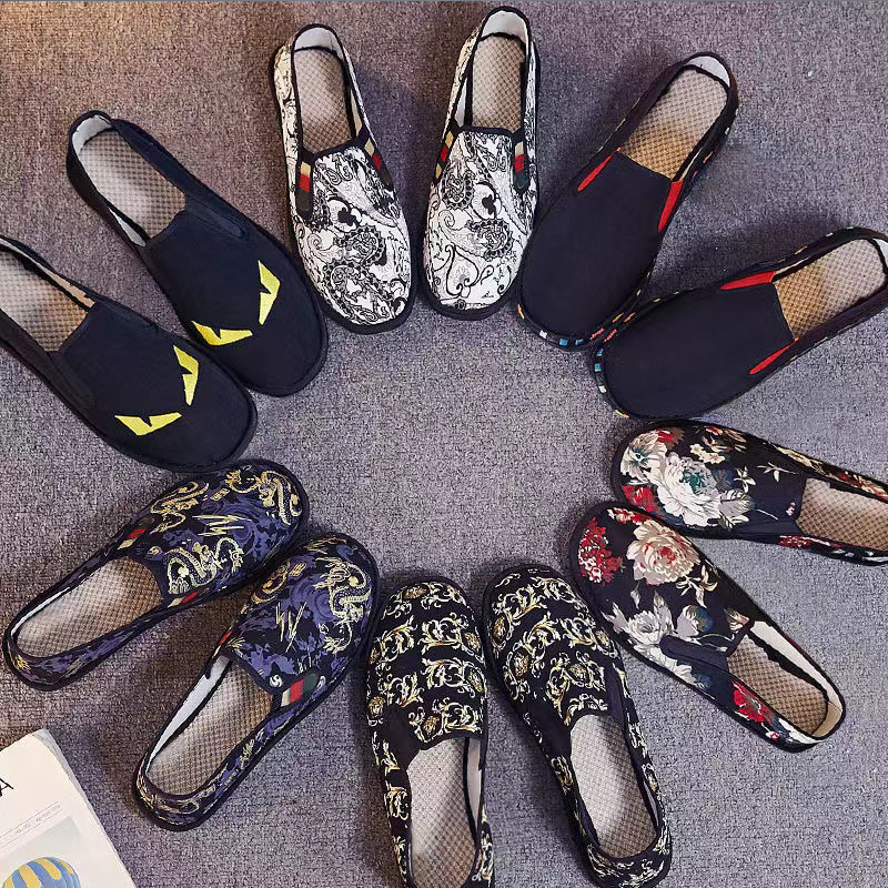 英国オールド北京ロートップスリッポンキャンバスシューズメンズレイジーカジュアルローファーシューズメンズソフトソールシングルシューズ薄底