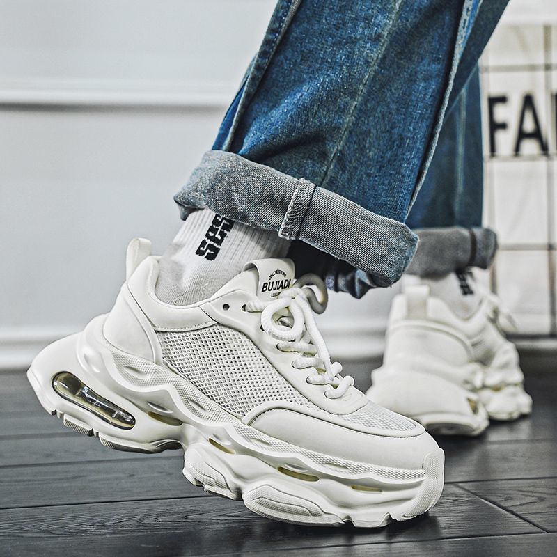 通気性のあるメンズシューズスポーツカジュアルシューズ 2025 多用途シルバーダッドシューズ厚底高さ増加メッシュシューズ