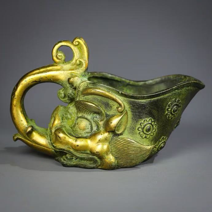 古董品 大唐正観酒器 唐代ワイングラス 三脚龍頭金杯 金器コレクション その他銅金装飾品