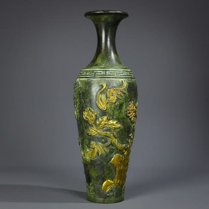 アンティーク真鍮金メッキ青銅龍と鳳凰五福花瓶ペアホームリビングルームの装飾品アンティーク銅色の花瓶