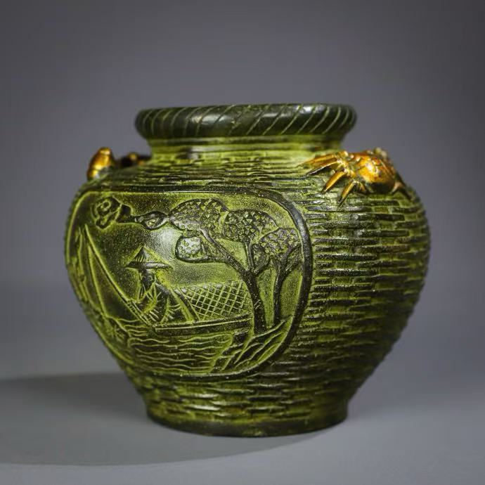 模造青銅骨董品銅コレクション真鍮カニ魚籠漁師の幸運の瓶四方の富と幸運の装飾品