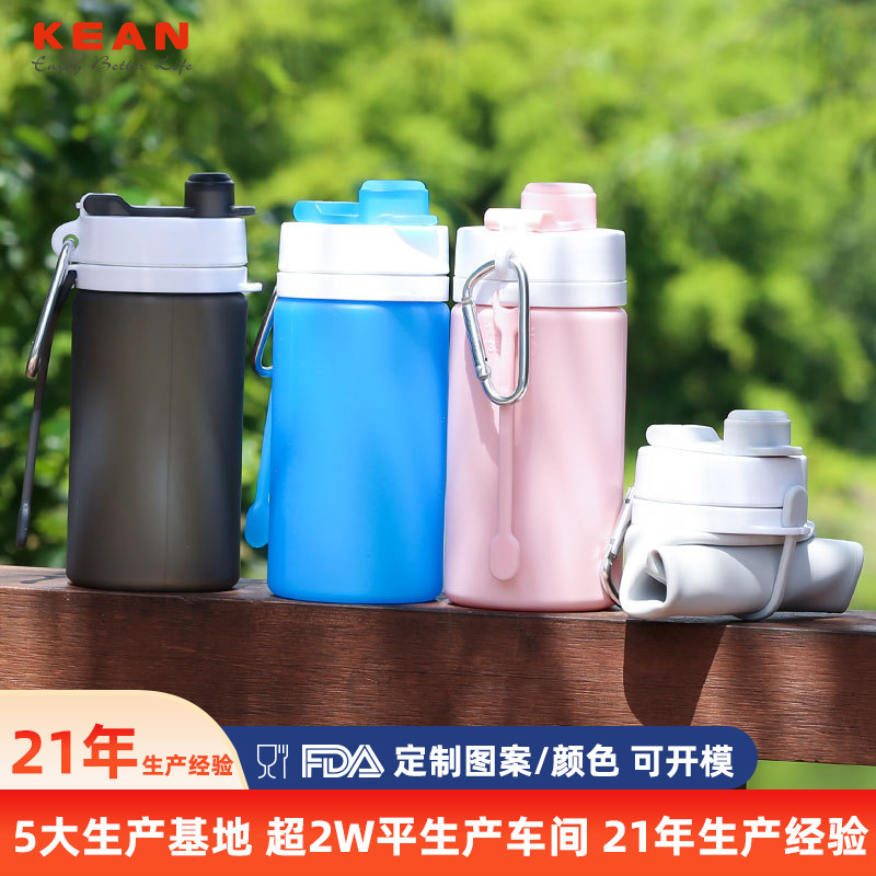 アウトドアスポーツ水筒携帯旅行水筒大容量持ち手折りたたみシリコン水筒プレゼント