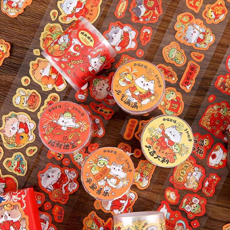 寓見誠品萌ニャン送福シリーズ-新年箔押しカット廃テープ漫画diy手帳装飾シール