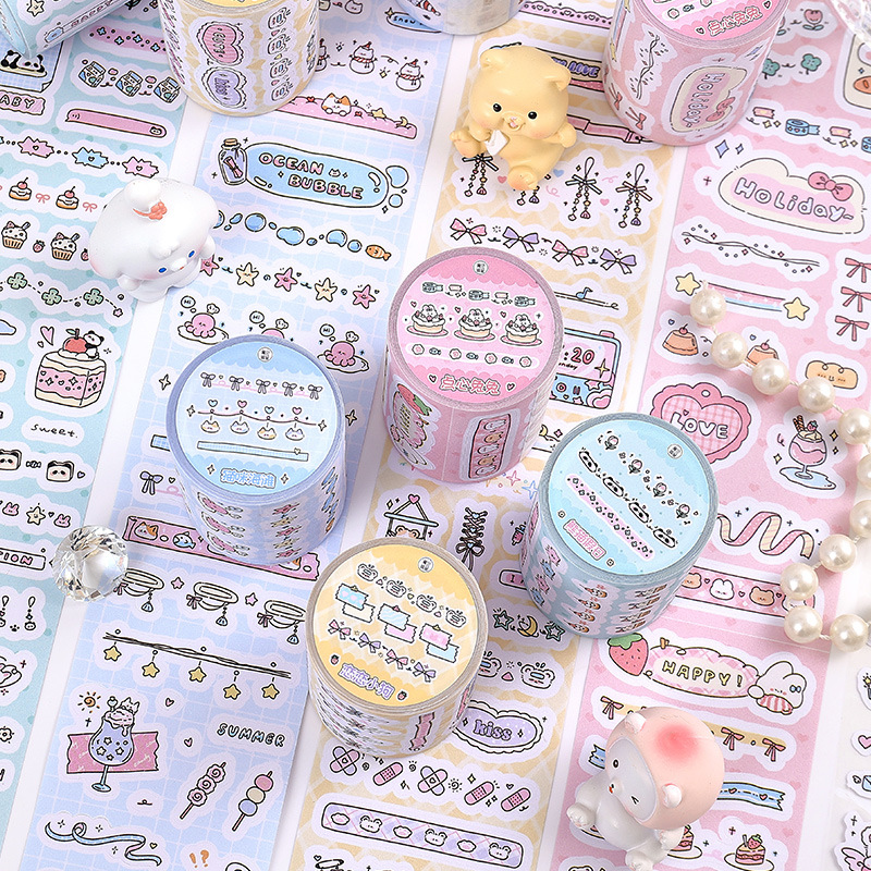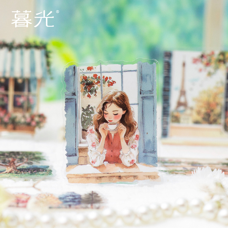 Momo プレス歯糸ロングステッカー 古代茶店シリーズ かわいい古代風ダイカットラベルステッカーパック