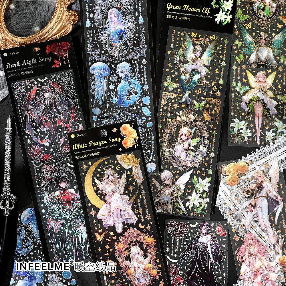 Infeel.me無界の境シリーズpet箔押し銀三段テープかわいい手帳装飾シール