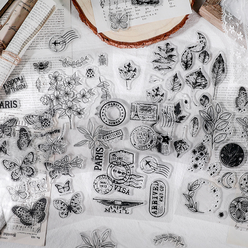 透明シリカゲル印章レトロ派シリーズオフィス日記捺印diyアルバムカード手帳素材16種類