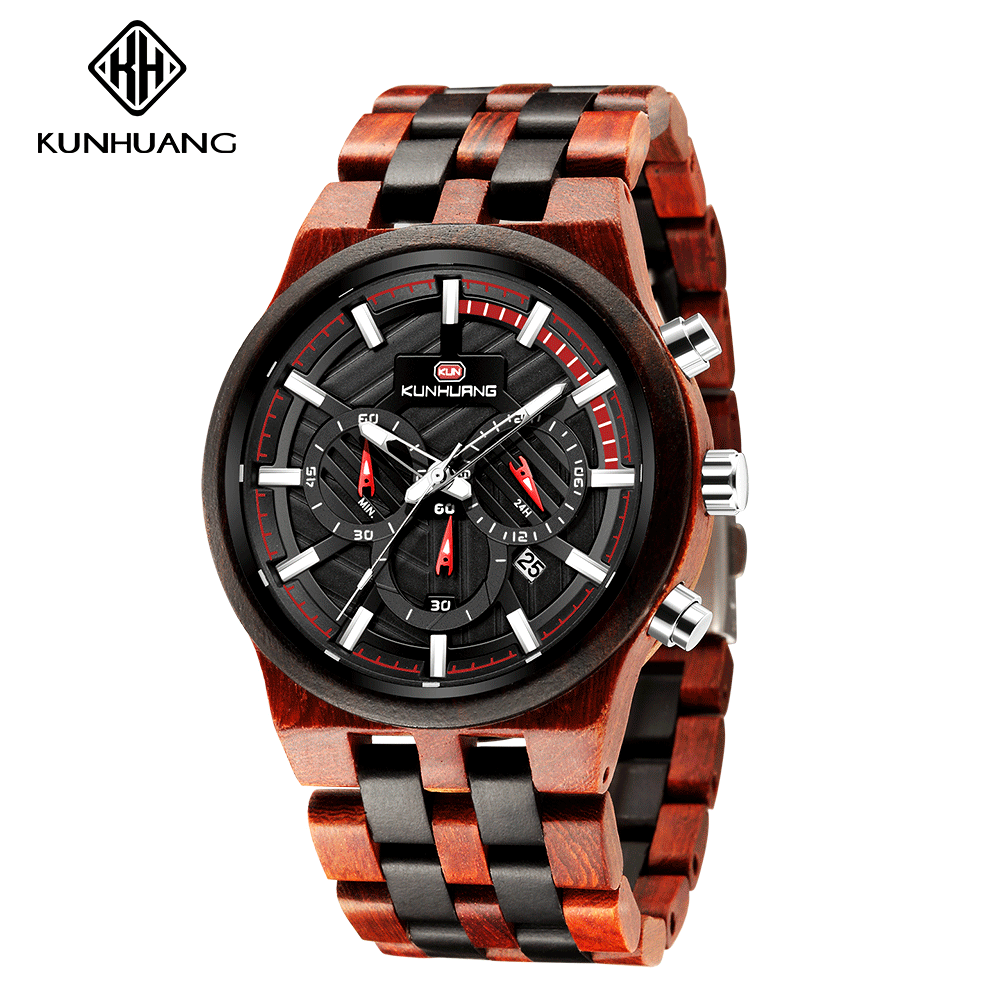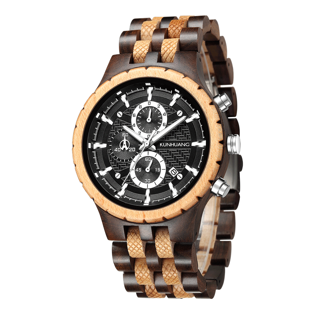 昆皇2021新品メンズ腕时计ファッションスポーツ多机能オール木制クォーツ时计wood watch