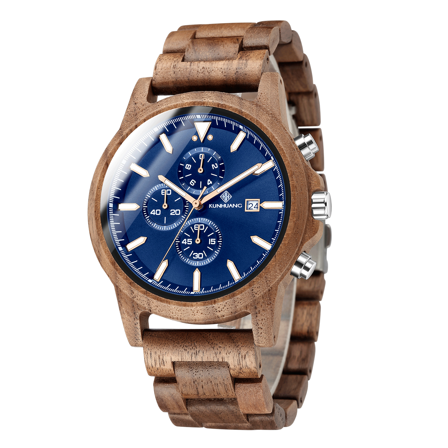 昆皇の新型男性木腕時計ファッション多機能純木手作りwatchシンプル独立駅腕時計プレゼント
