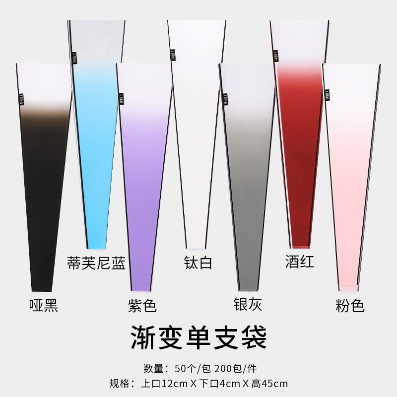 グラデーションバラのバッグを厚くして、花だけでプレゼントの花束を1パック50個ほど包装します