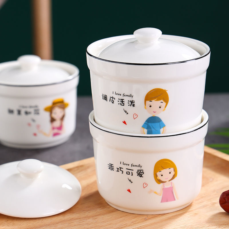 蓋付き漫画セラミック防水シチューポット、家庭用デザート蒸し卵ボウル、1人用中国ツバメの巣スープポット、シチューポット卸売