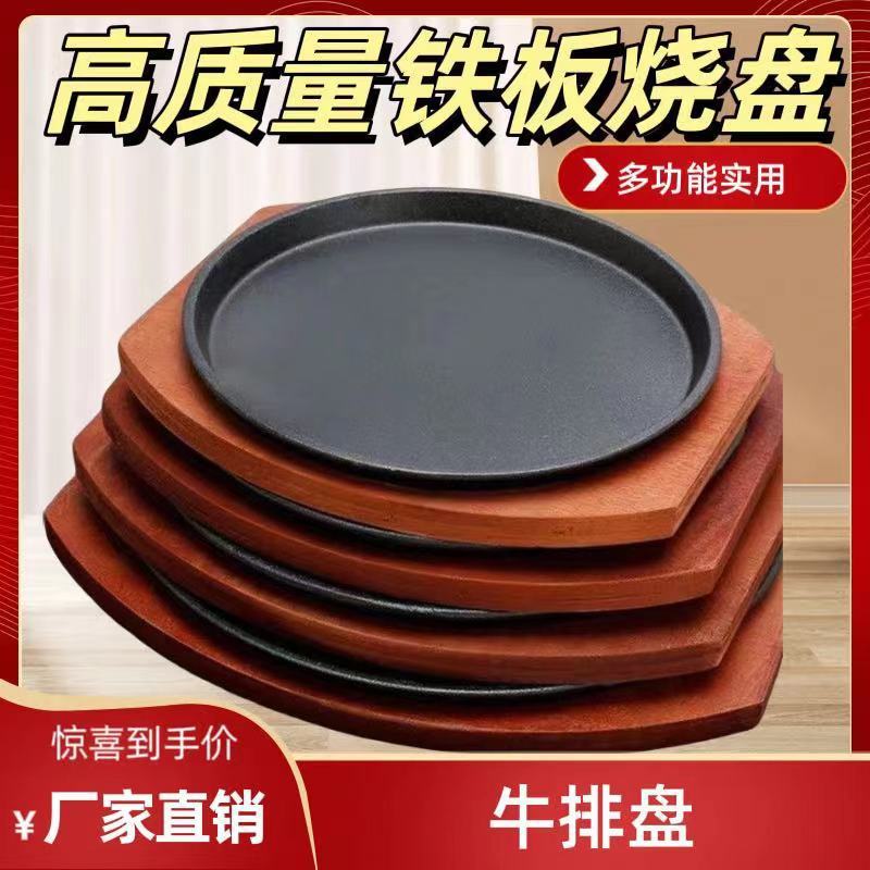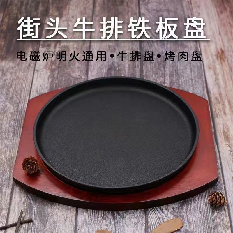 商用鋳鉄ステーキ皿鉄板焼き皿家庭用韓国式焼肉皿円形ステーキ皿焼き鋳鉄皿共通