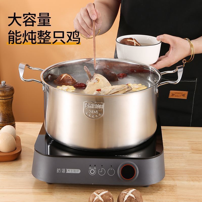 304 ステンレス鋼スープポット、厚みのあるミルクポット、蒸し器、ガスストーブ、電磁調理器、お粥、ユニバーサル鍋、家庭用鍋工場