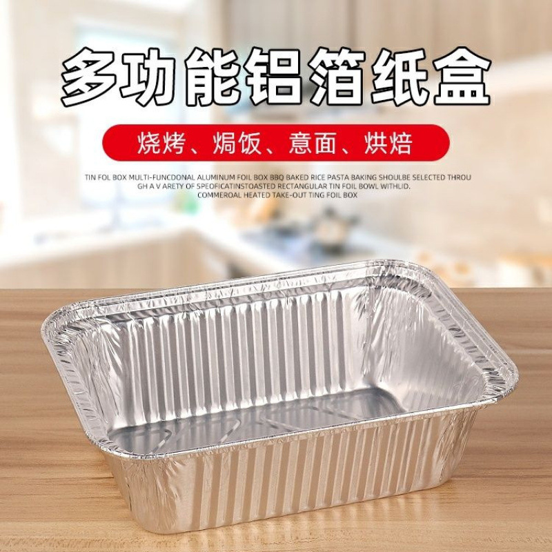 アルミ箔ボックスバーベキュー高温耐性アルミ箔トレイオーブン使い捨て長方形テイクアウト焼き魚包装箱弁当箱卸売