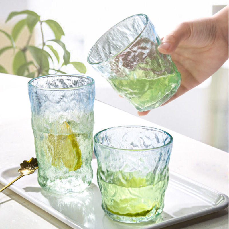 水杯家用透明玻璃杯大容量复古树纹冰川杯高颜值磨砂日式洋酒杯子