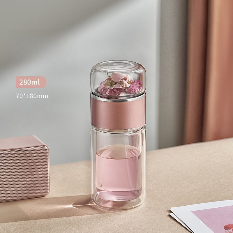 男性と女性の見栄えの良い二重層高温耐性ガラス茶水分離ポータブル大容量フラワーティーカップティーカップ