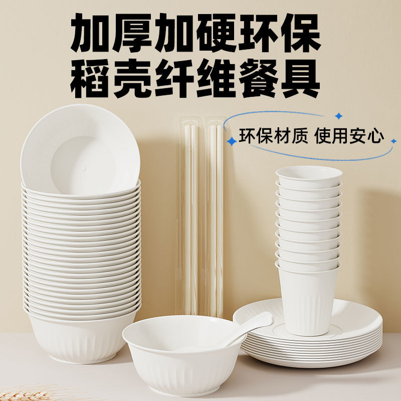 籾殻食器を一度に厚くして高温に耐えて分解できるピクニック家庭用食器カップ箸鍋食品級卸売り