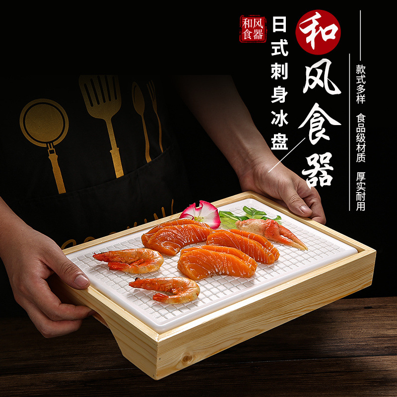 プラスチック刺身氷皿魚生専用皿サーモン氷皿エビ生注水皿長方形円形氷板商用