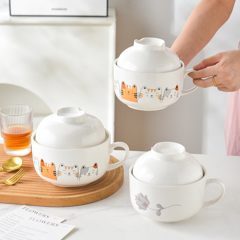 和食器 インスタントラーメンボウル 陶器弁当箱 電子レンジボウル 蓋付き オフィスワーカー 学生 かわいい 寮 丼 家庭用