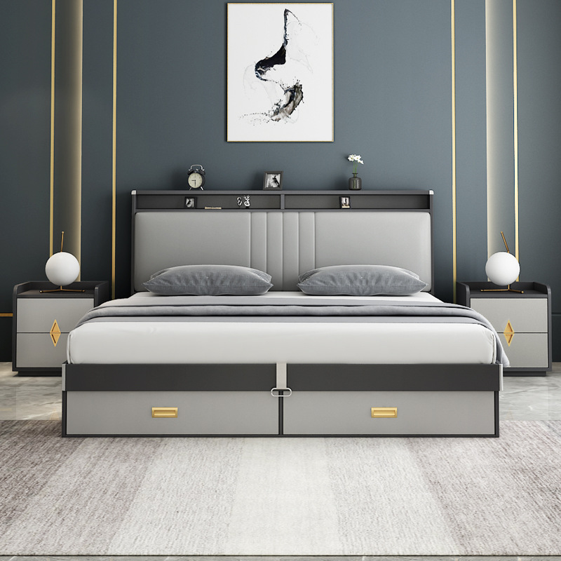 ベッド現代シンプル主臥1.8メートルダブルストレージベッド北欧1.5m高箱ベッド収納ボードベッド経済的