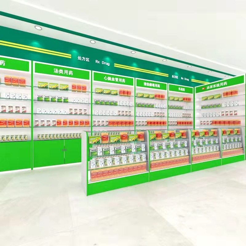 木製中島両面展示棚薬局棚西洋薬棚薬局薬品展示棚診療所処方棚薬棚