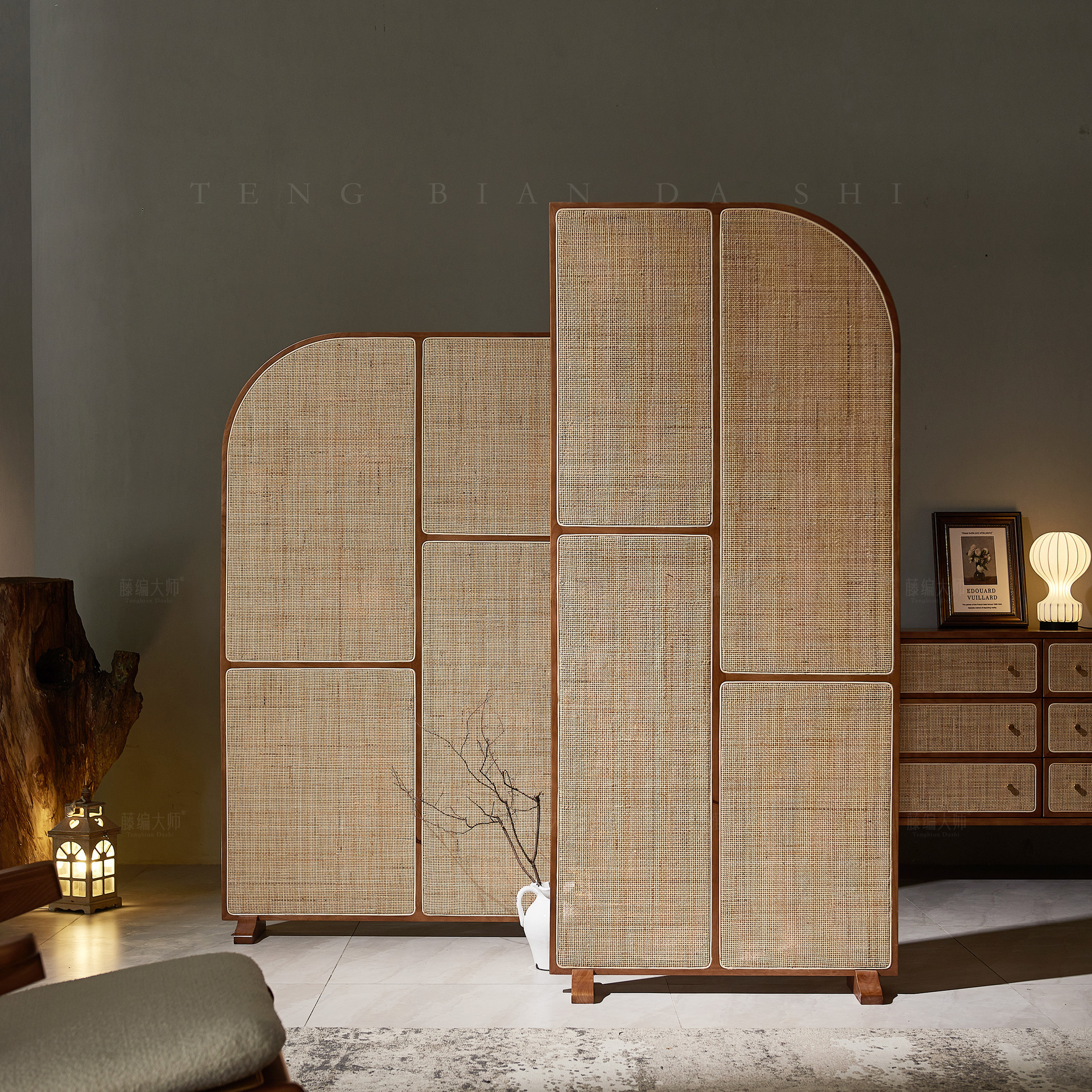 日本式の実木藤編み屏風の組み合わせの小戸型の客間の創意は壁を隔てて移動します。