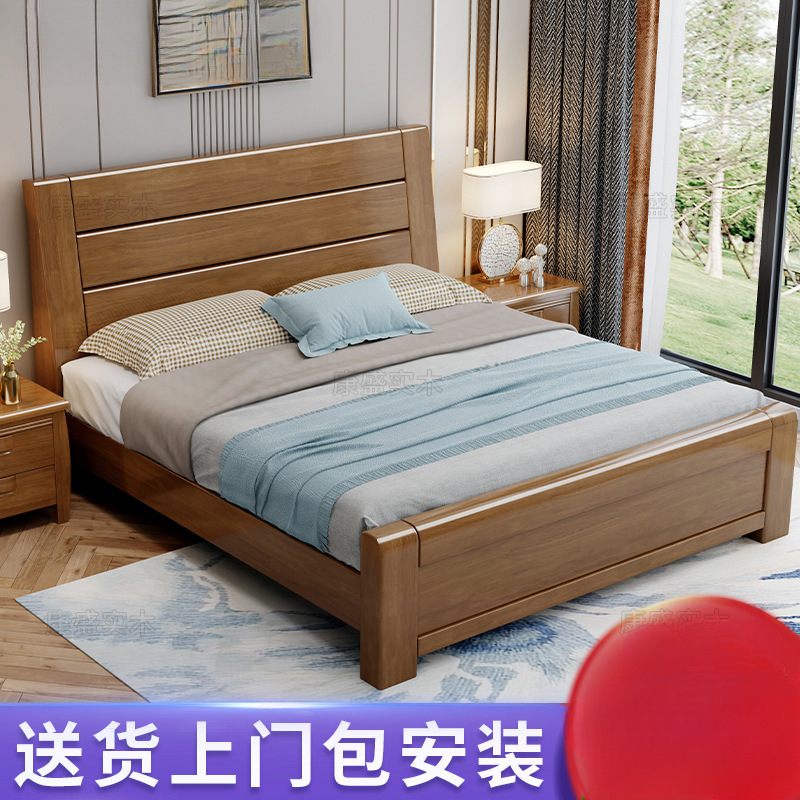 新中国式実木ベッド1.8メートルベッド1.5mツインベッド経済型シンプル現代家具主寝室貯蔵物