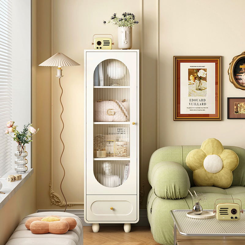 フランス式クリーム風本棚家庭用リビングルームガラス防塵展示棚ソファ