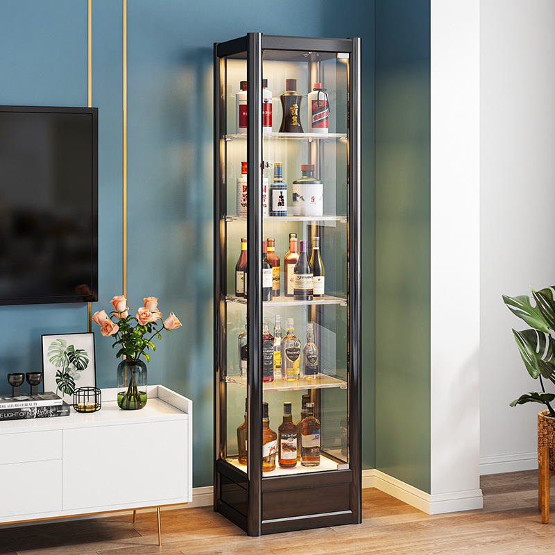 ワインキャビネットのショーケースのリビングルームの家庭が床に落ちた2024の新しい高級な軽贅沢なネット赤は壁の小型ガラスの扉の酒棚に寄りかかっている