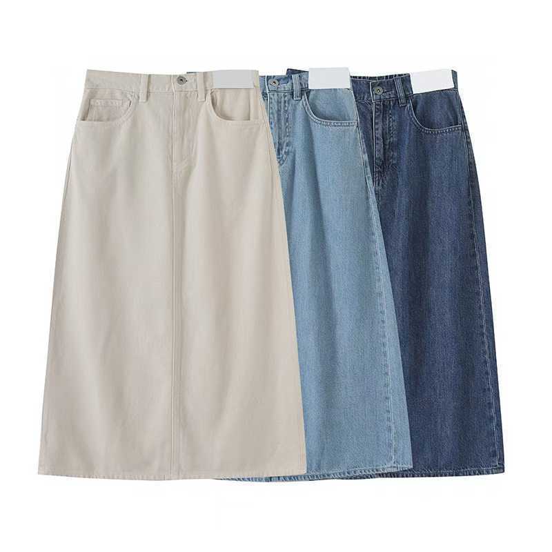 日本製レディース 25春夏 ドレープデニム風ナロースカート ウォッシュ加工スカート ハーフスリットスカート 475832