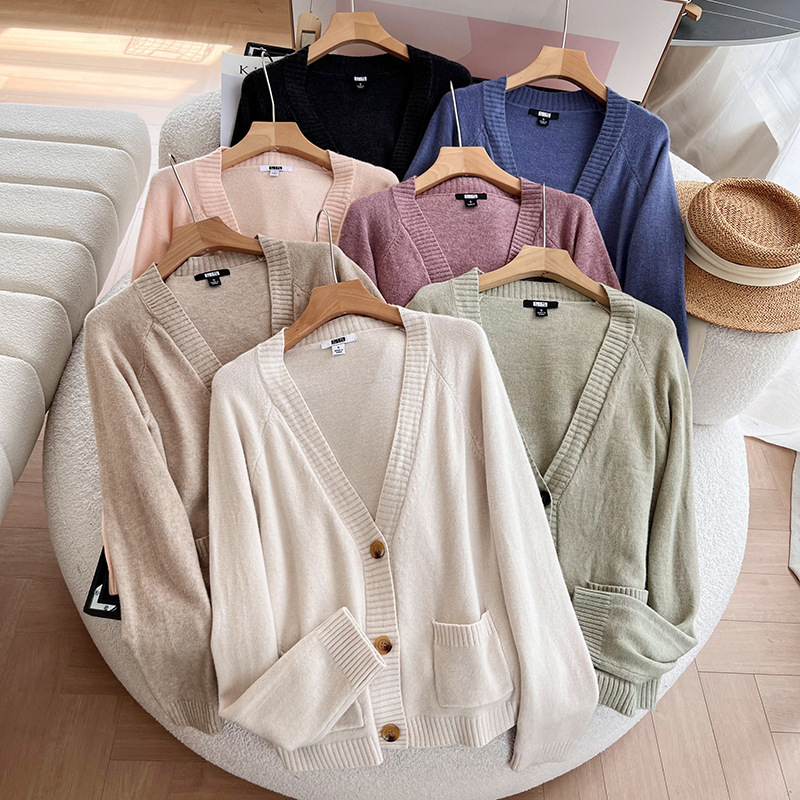 2024 秋の新ベーシック多用途長袖ソフトワックス状 V ネックニットカーディガン女性のセータージャケットイントップ