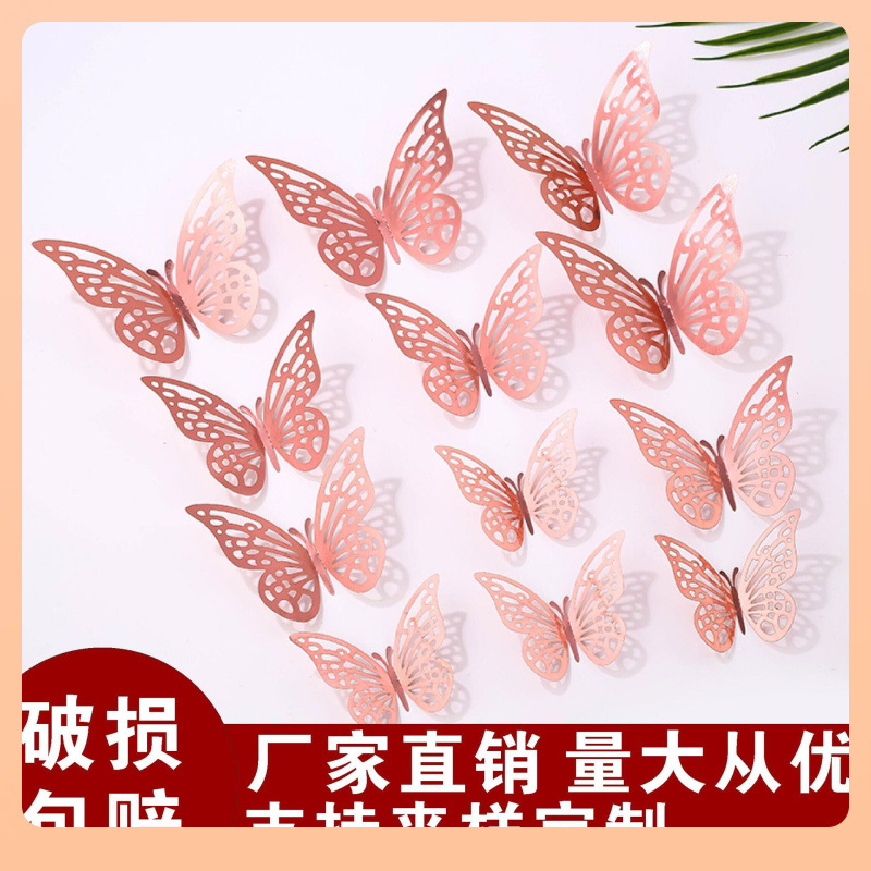 ⇓ 中空蝶ウォールステッカー 3D 中空模造金属蝶ウォールステッカー ホームリビングルーム背景壁装飾クリエイティブステッカー
