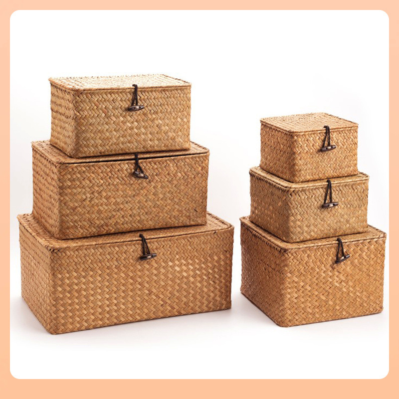 ✅海草編み収納かご収納かご洋式結婚祝いのお土産かごには、喜糖藤柳編みのギフトボックスがあります。