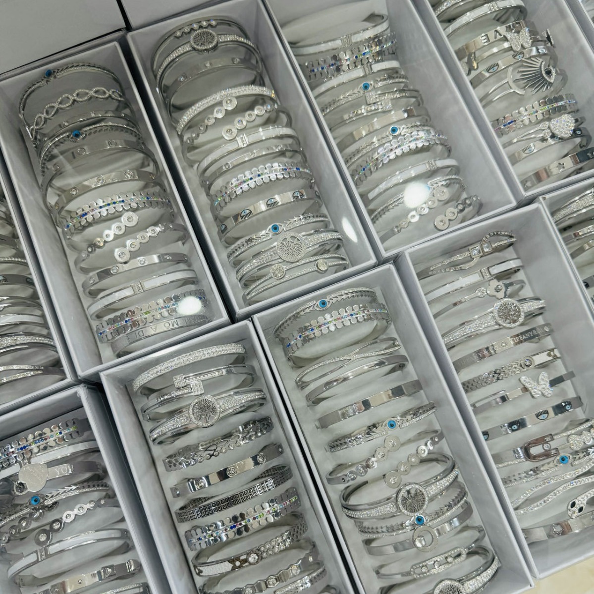 爆発的なファッションの高級感のある個性的なアクセサリーのブレスレットは国境を越えて卸売りします。チタン鋼の銀色のブレスレットのブレスレットのブレスレット