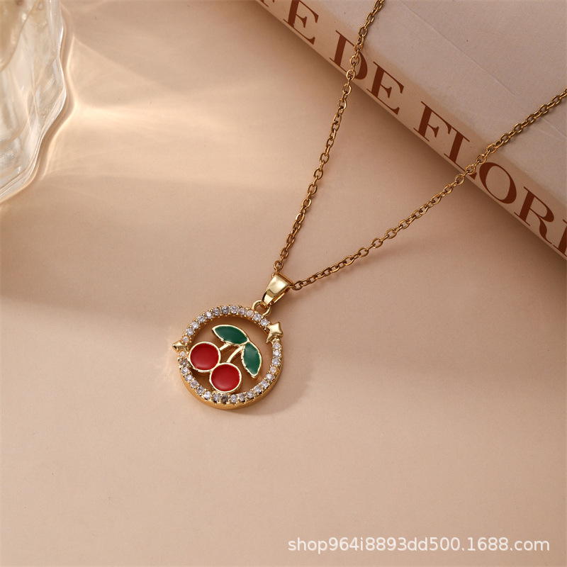 ネックレス レディース 韓国風 チェリーネックレス インスタイル ニッチデザイン シンプル ネットセレブ 同風 クロスボーダー チタン鋼 鎖骨チェーン