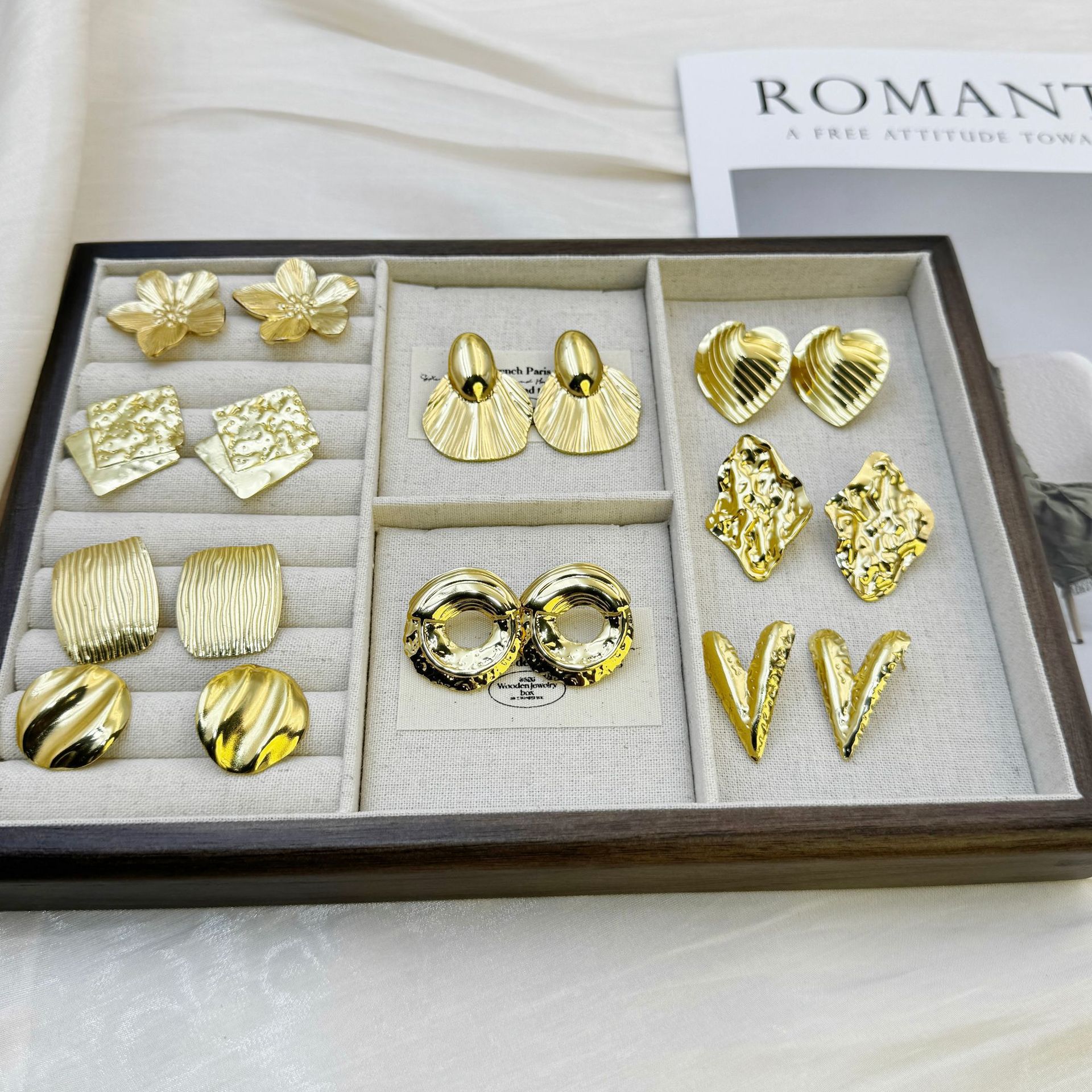 欧米の国境を越えた金色のイヤリングはシンプルで不規則な幾何学的耳飾りチタン鋼メッキk金イヤリングメーカー卸売り