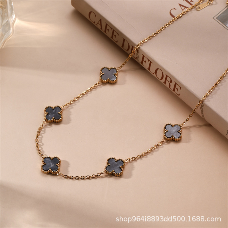 国境を越えた人気の五花両面四つ葉のクローバーチタン鋼ネックレスライト高級ニッチデザイン18K色褪せない工場直販