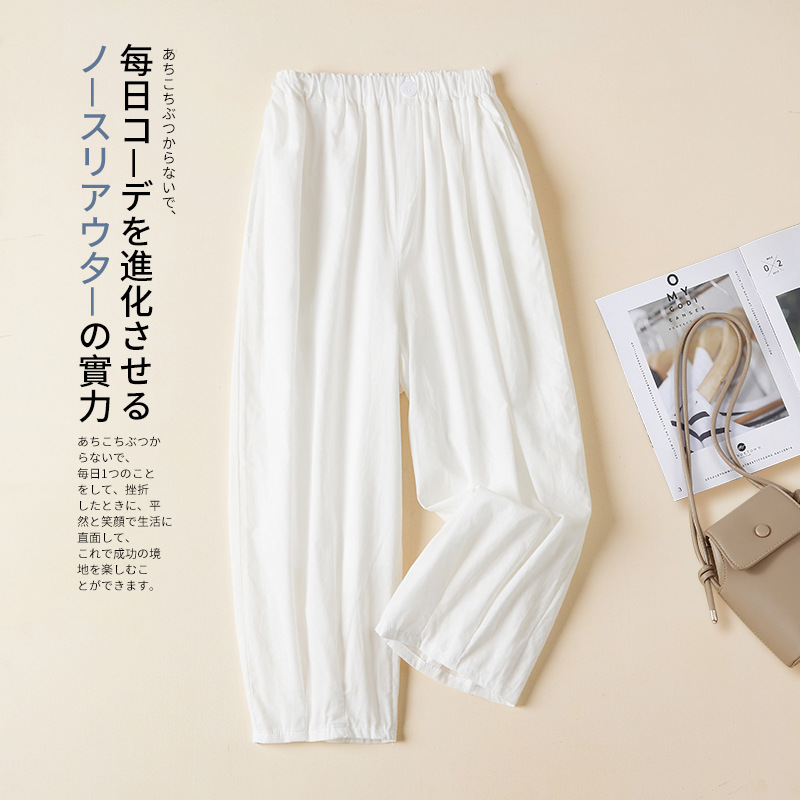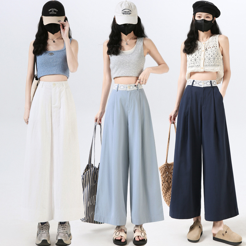 スポットレーステンセルコットン9点ワイドレッグパンツレディースハイウエストスリムスプライシングウエストデザインカジュアルストレートパンツ