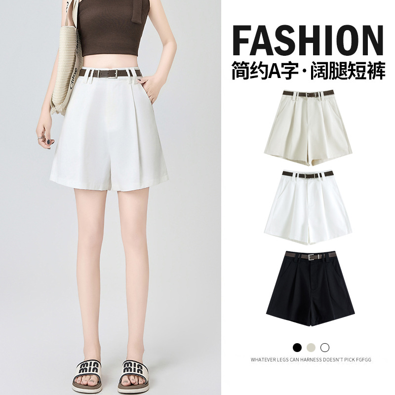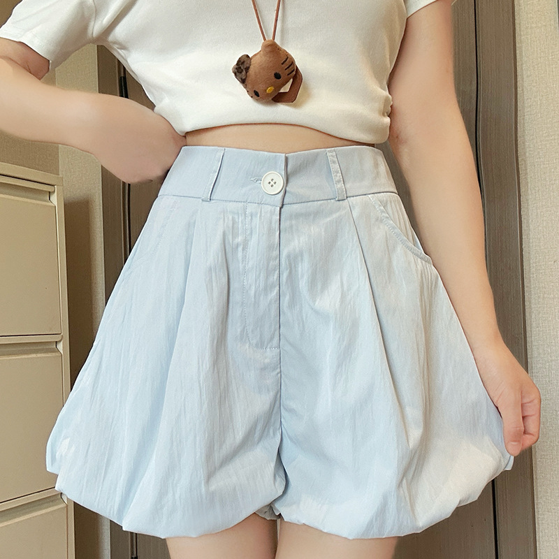 2025年夏の女性用スポットバドショーツ、新しいハイウエスト痩身カジュアル小柄ルーズワイドレッグアイスシルクパンツ