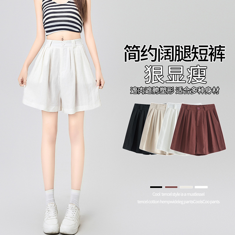 在庫ありテンセルリネンスーツショーツ女性用 2025 新作夏薄い小柄なルーズカジュアルパンツ