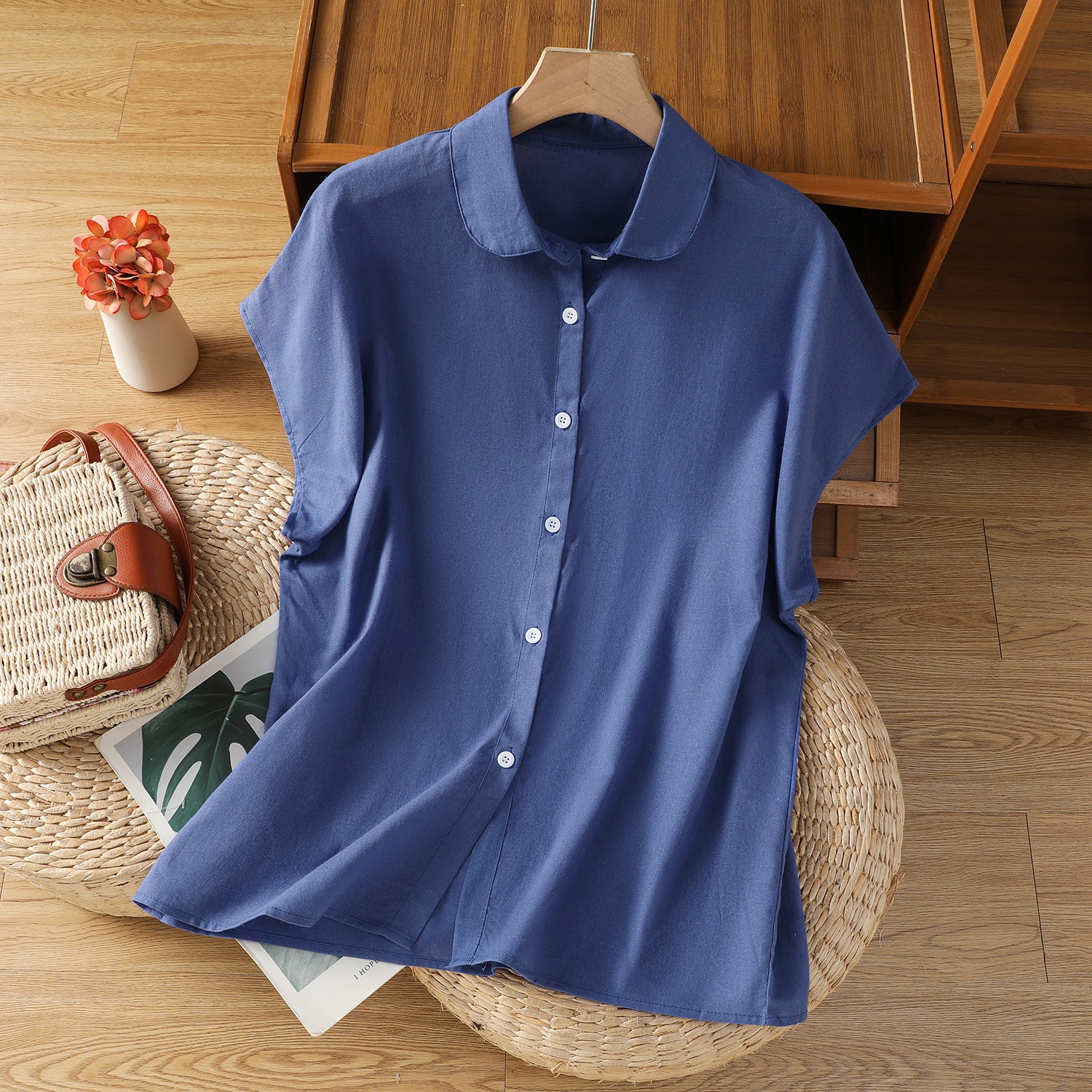 在庫あり シックな袖付き文学的でシンプルなリネンシャツ レディース シングルブレスト スモールラペル ルーズ 通勤 万能トップス