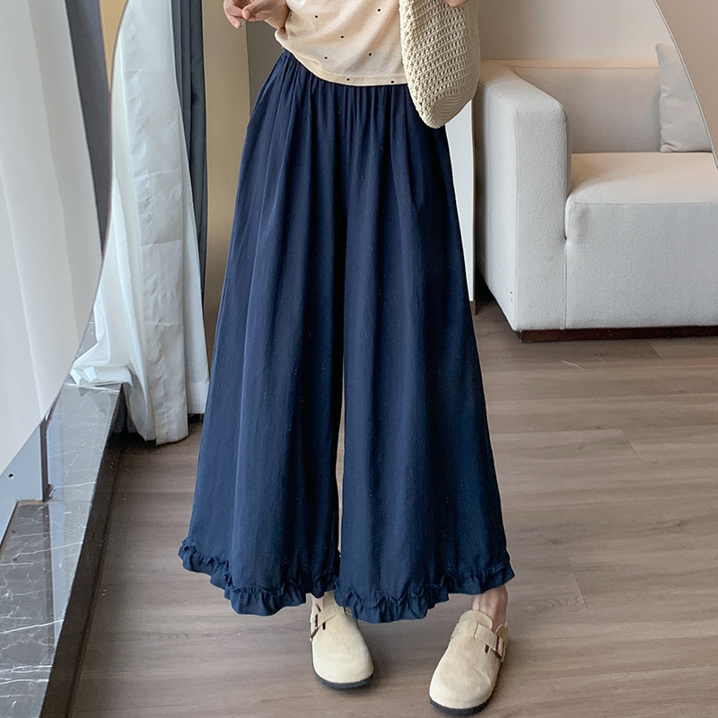 スポット韓国スタイル木耳レースリネンワイドレッグパンツ女性のための 2025 新しい夏ハイウエストストレートカジュアルマイクロフレアパンツ