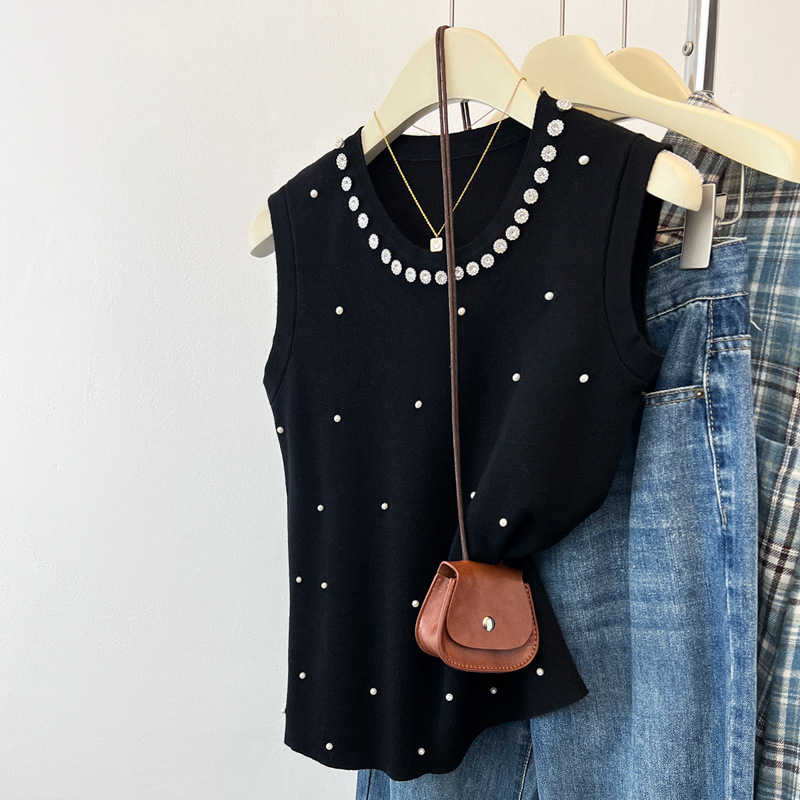 スポットグッズ!スポットグッズ!在庫に大きな写真があります! 2025 夏フレンチヘビービーズセーターベスト女性のトップス