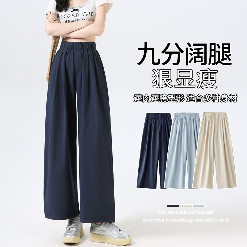 在庫あり 2025 夏の新カジュアル 9 点パンツ女性のテンセル綿ワイドレッグパンツハイウエストルーズ痩身ストレートパンツ