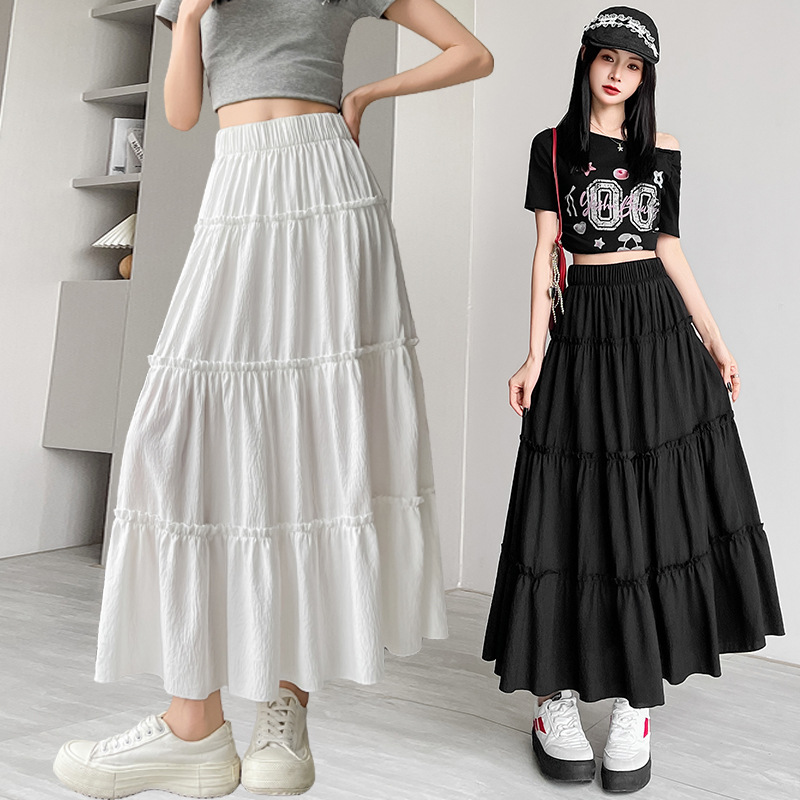 女性のためのホワイトケーキスカート 2025 新しいハイウエストミッドレングススカートルーズ韓国スタイルチュチュスカート