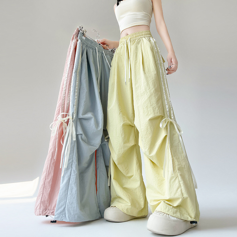 在庫あり 2025 新しいキャンディーカラーのリボンウェビングパーソナライズされた軽量速乾オーバーオールカジュアルパンツ女性用
