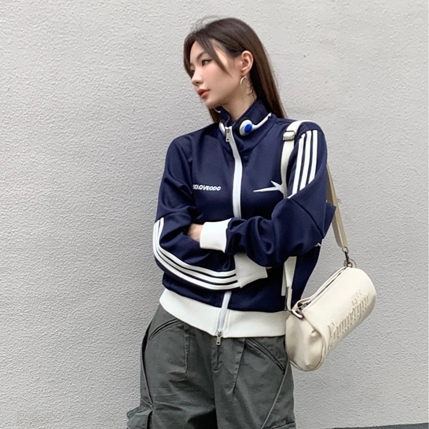 在庫あり 2025 秋冬新スタイルスターデザインコントラストカラーダブルジッパーショートジャケットカーディガンレディースジャケットスポーツスタイル