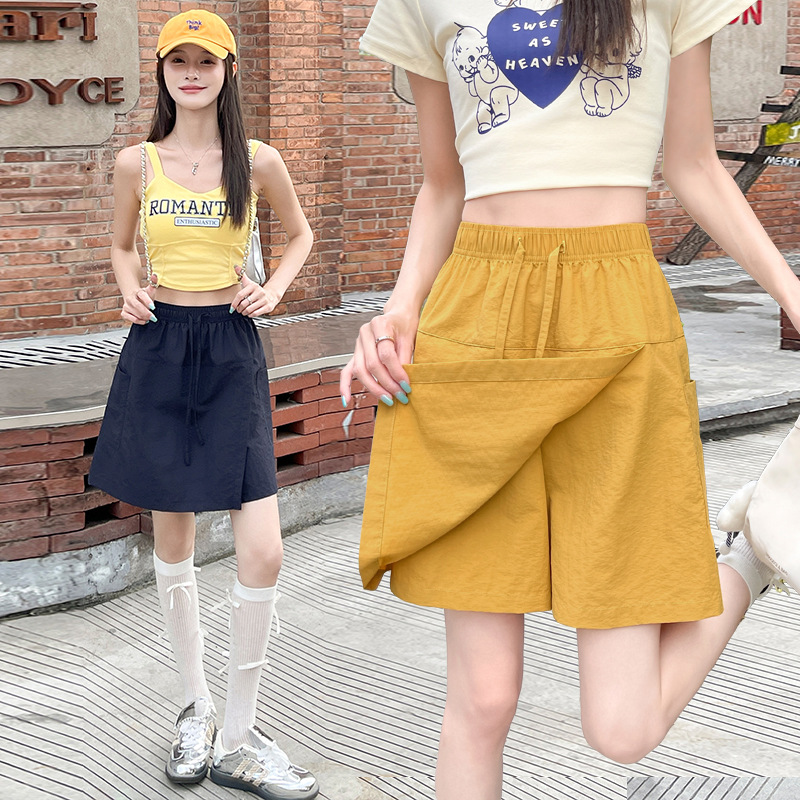 在庫あり 2025 多用途スリムネイビーブルーパンツスカート露出防止スカートショーツ 5 分パンツ速乾性カジュアルパンツ女性用
