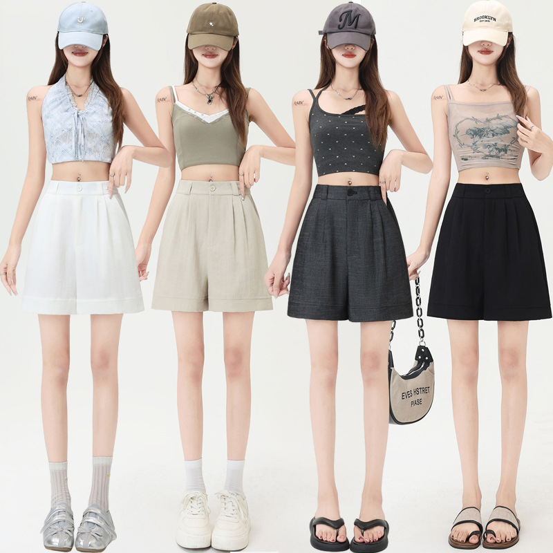 在庫ありテンセルリネンカジュアルルーズ多用途外国風年齢軽減ワイドレッグパンツ夏の女性の痩身白ショートパンツ