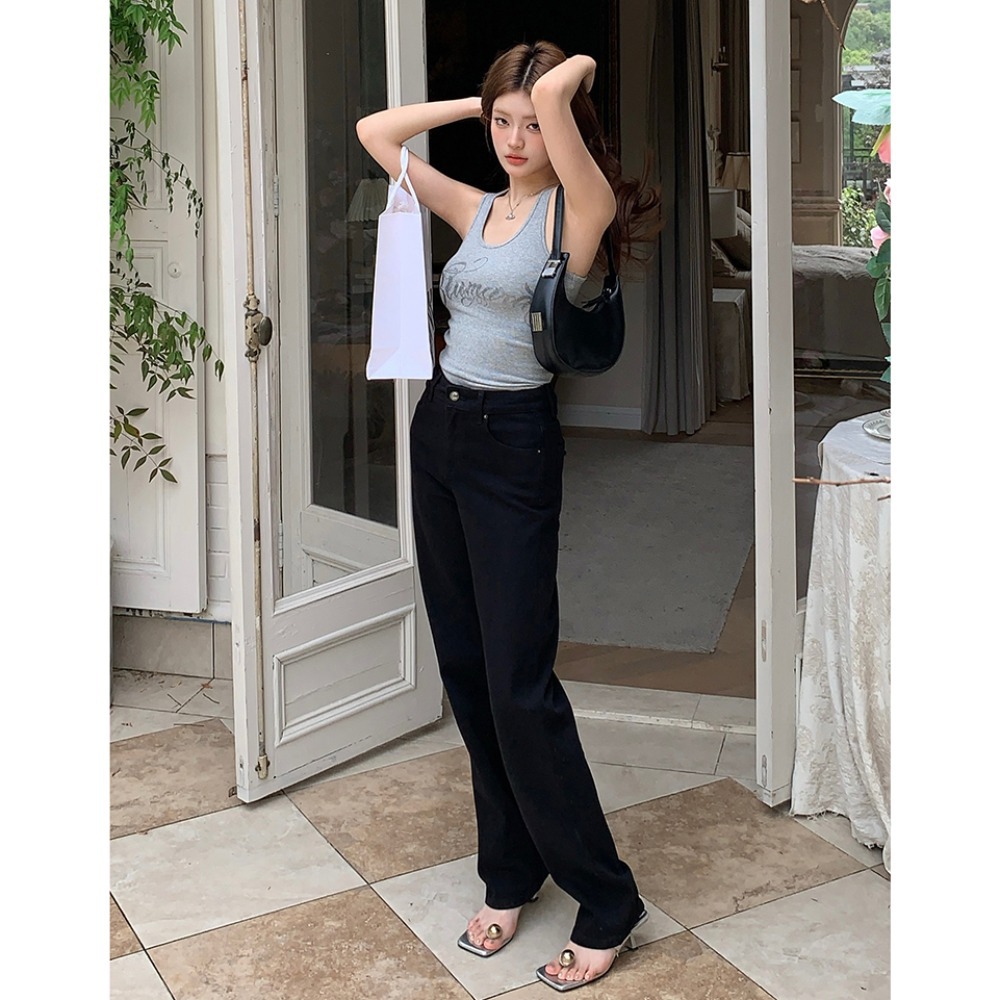 在庫あり 2025 秋冬新作ストレートレッグロングレッグブラックワイドレッグパンツハイウエスト痩身ジーンズパンツ女性用